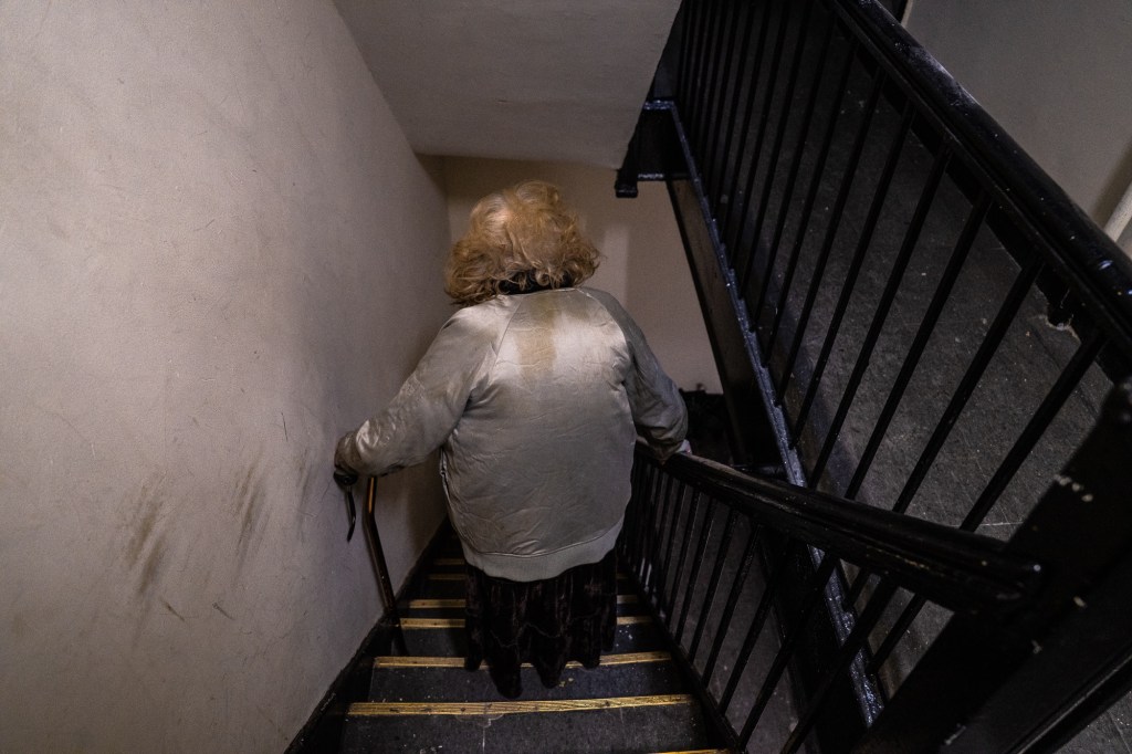 Morning brings bright light, a signal that it’s time to begin the arduous process of getting out of bed, and time to weigh the prospects of perhaps making her way down two steep flights of stairs to break into the daily stream of the neighborhood below her window.