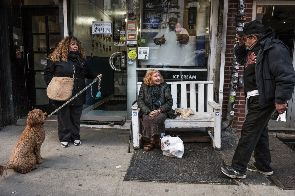 Ginette, December 2019November 2019…..Ginette in her apartment on Avenue A, in the East Village of New York City. Ginette has lived in the same apartment for forty-six years. The apartment exists in a state of suspended animation, as it has no modern fixtures and is typical of many rent controlled apartments in older walk-up buildings. Old pipes, dysfunctional heating, poorly maintained plumbing and rodent, cockroach and bedbug infestation characterizes the experience of day to day life in Ginette’s apartment. She has been collecting odd bits of other people’s lives from the streets and at times the garbage, filling her space, each bit of detritus meaningful and weighted by memory and association. I used to come upon her at night, with her little dog Vanille, as she carefully picked through neighborhood trash, gathering discarded food for Vanille, and cast off treasures for her apartment which has become a museum of her life. One of my first pic of Ginette and Vanille on Avenue A, September 2017. Vanille died suddenly in early 2019.December 2019….Severe pain sets an insurmountable hurdle, limiting Ginette’s ability to participate in life outside her apartment. Chronic pancreatitis, arthritis, lifelong hip deformity and degenerative spinal disorder have made free and natural movement impossible. On this morning, a film crew focusing on my work with Ginette was in the apartment, and she graciously allowed us to work to document her experience. Her plan to go make her way downstairs to sit on a bench outside her building to watch the parade of life in the East Village had to be postponed because she was unable to get on her feet.November 2019