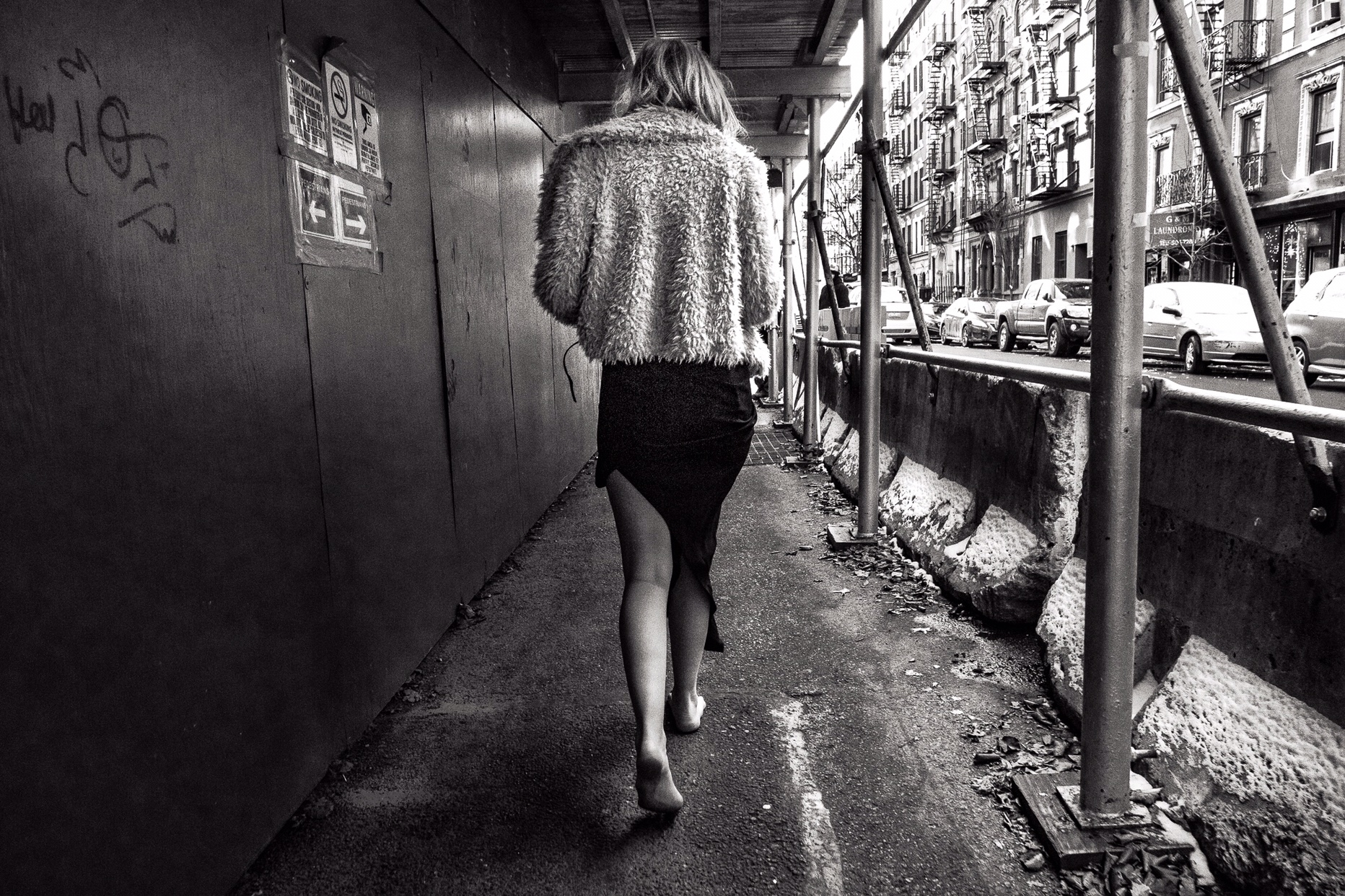 We walked very fast, I wanted very much to see her face. I wanted to know…..was she an East Coast, New York City version of a Skid Row beauty, a tragedy unfolding before a spectacular disintegration of some kind…. I thought this as I tried to keep up.